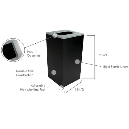 designed to brighten any program. With four distinct shapes to choose from, these recycling & waste stations may be configured in a variety of ways to maximize collection and participation rates.