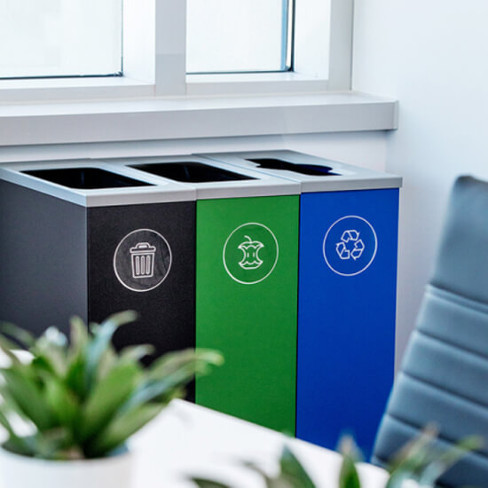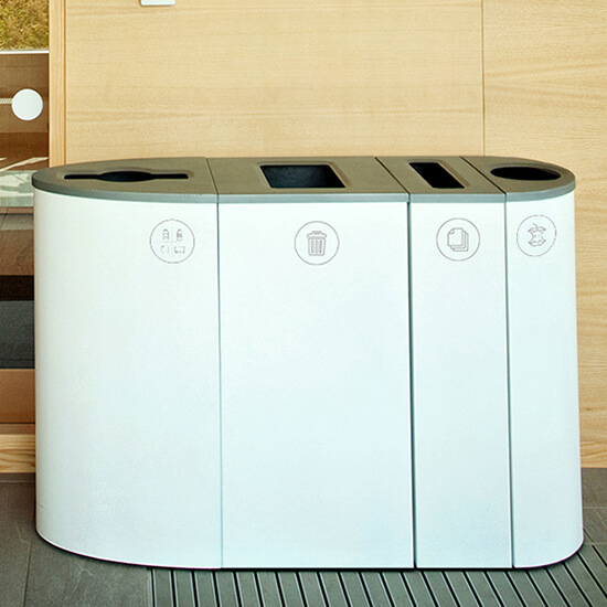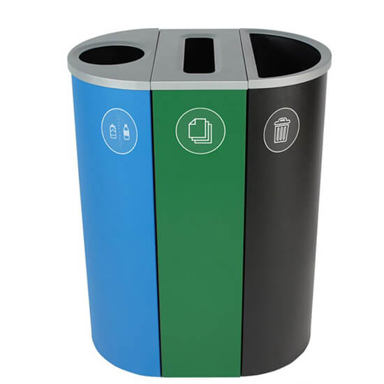 designed to brighten any program. With four distinct shapes to choose from, these recycling & waste stations may be configured in a variety of ways to maximize collection and participation rates.