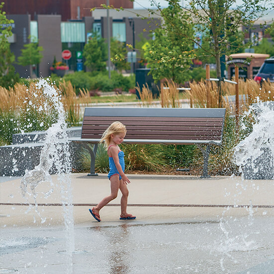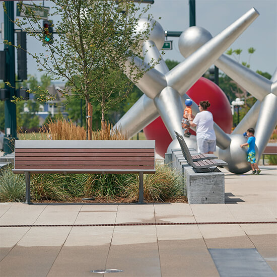 This uniquely modern Allure contour bench with recycled plastic planks is the perfect accent to any eco-conscious outdoor space.