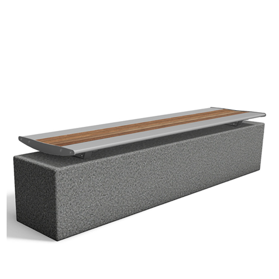 The Allure Thermory flat bench a low-maintenance option for outdoor spaces made with thermally modified American White Ash and powder-coated aluminum.
