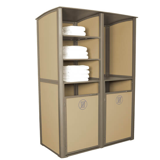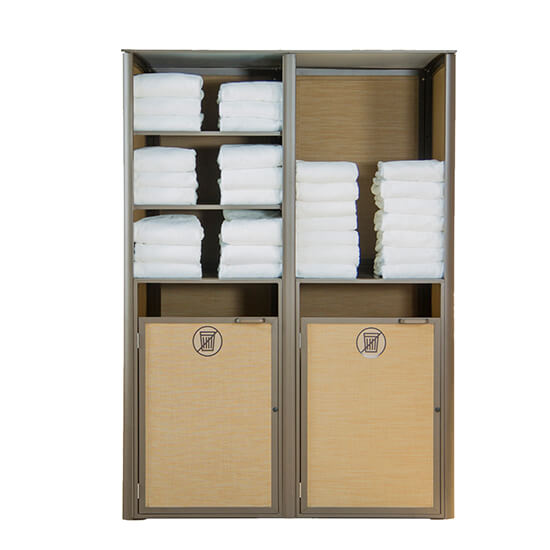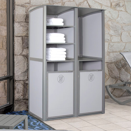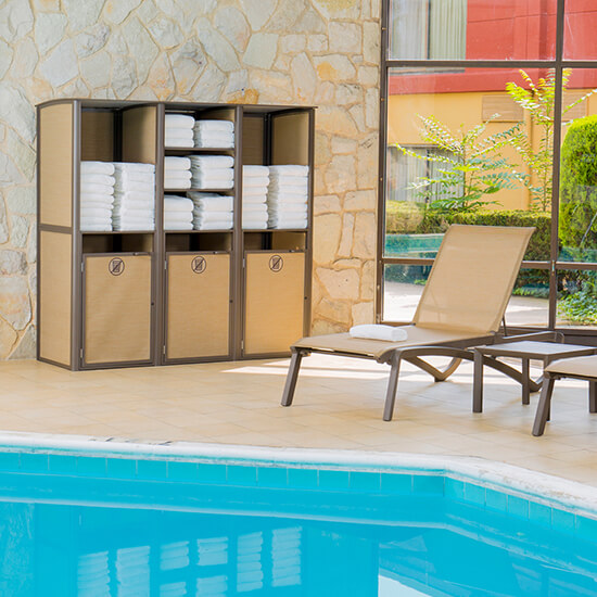 - Simple and beautiful solution for towel storage in your pool, spa, and gym areas