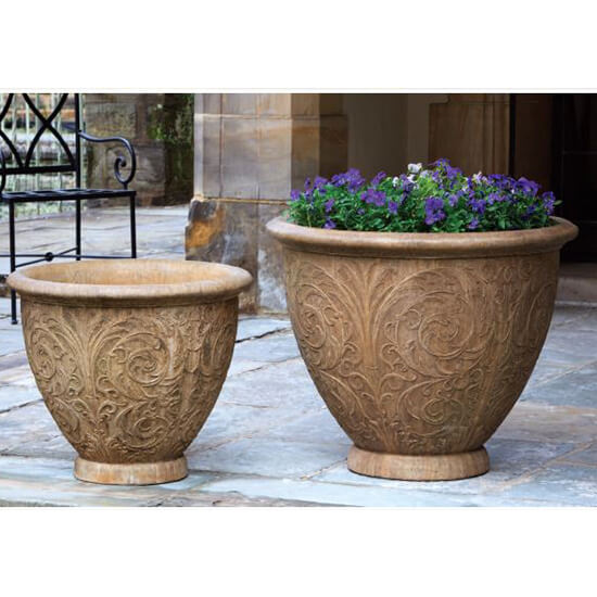 These beautiful cast stone products are available in a choice of three exclusive (3) acid stains and eight (8) exclusive natural pigment stains in addition to natural cast stone. All of our patinas and acid stains are hand applied in a multi-step process, producing uniquely beautiful original pieces. Designed to replicate the look of naturally aged materials, the patinas will not prevent the natural aging process that occurs in an outdoor environment.