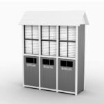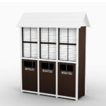 * Front hinged door with “TOWELS ONLY” opening identification and liner.