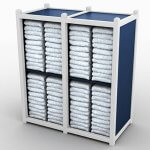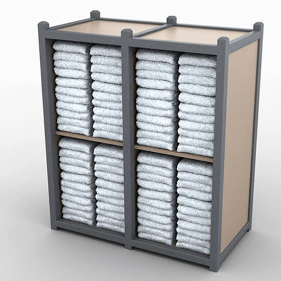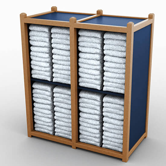 Double Horizontal towel storage with plain panel design includes shelves, for clean organization of your guest towels.