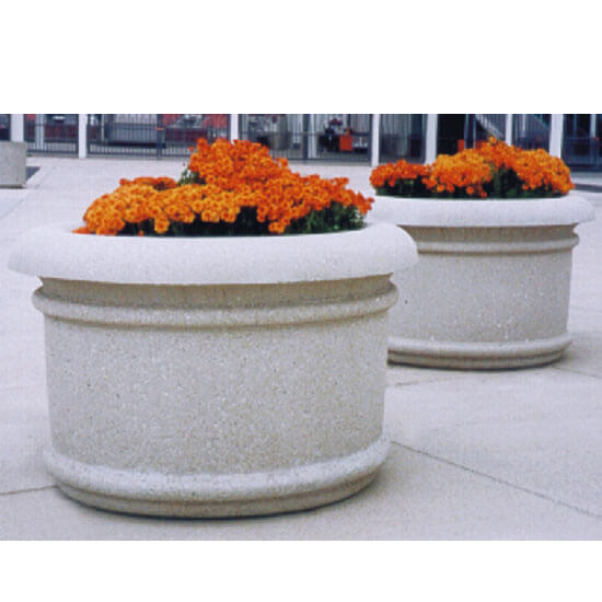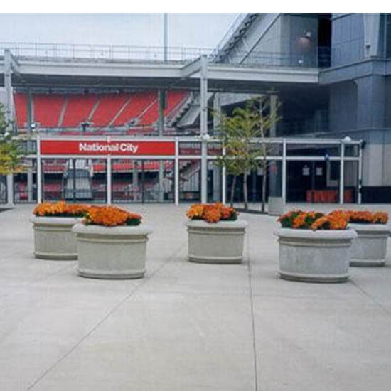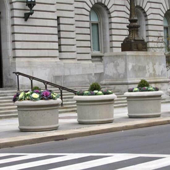 Decorative Security Barriers – Aurora Series Round Concrete Planters are steel reinforced