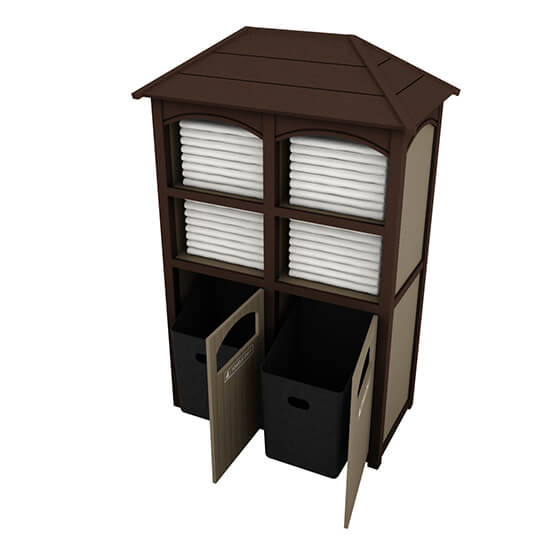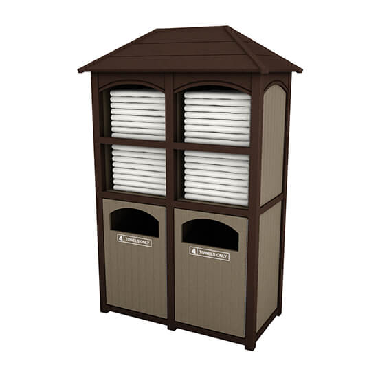Our Earth Friendly Towel Valets are constructed 97% recycled milk jugs. It is resistant to insect, mildew, mold, & graffiti. Won’t split, rot, crack and never needs paint. Has UV inhibitors to prevent fading. Comes in 10 colors with multiple combinations available.