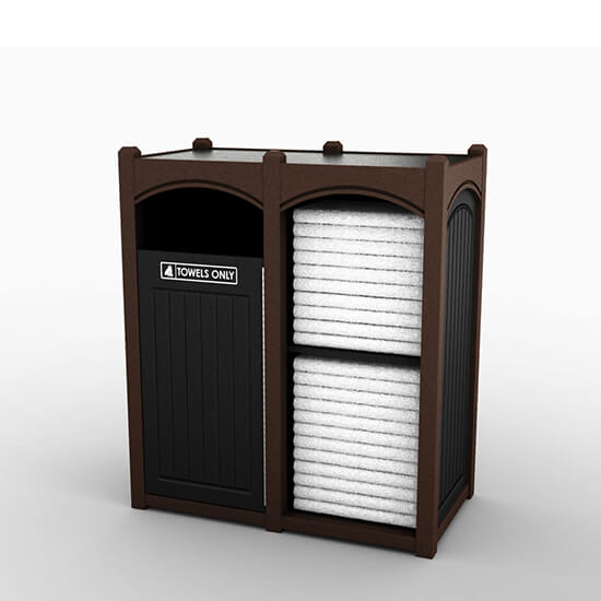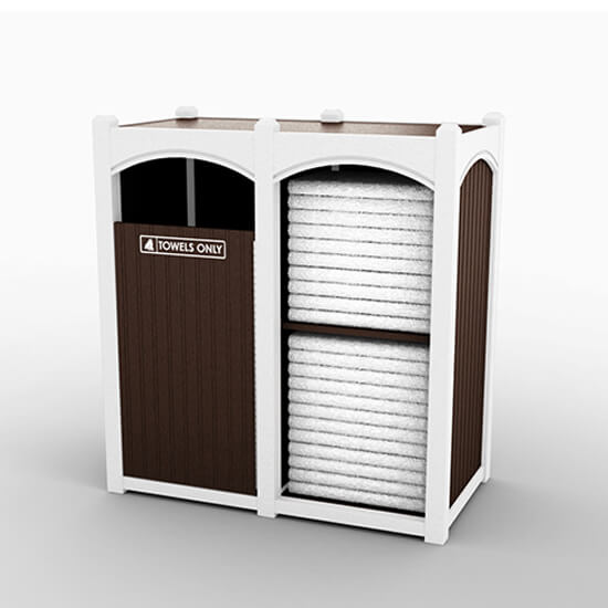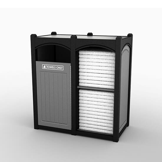 * Includes shelves, front hinged door with “TOWELS ONLY” opening identification and liner.