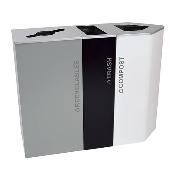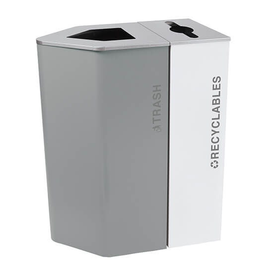 - Use standalone or group together as a recycling center. Adapts beautifully to changing trash disposal and recycling requirements.