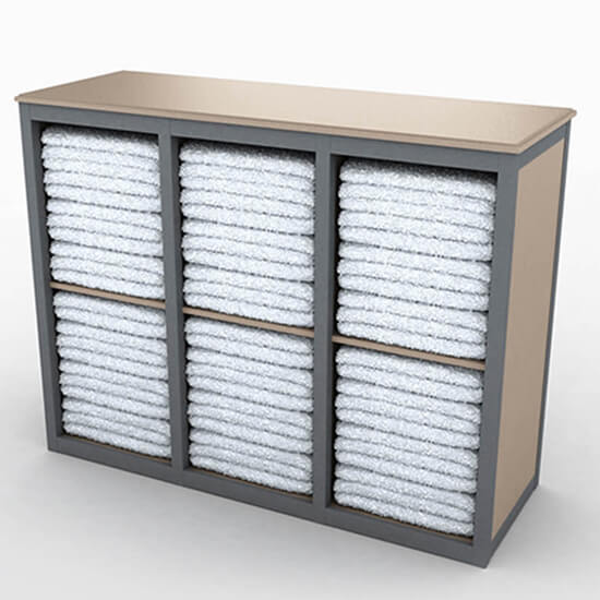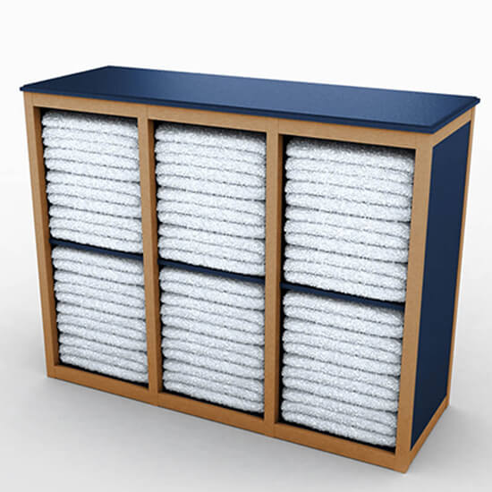 Horizontal triple towel storage. Includes shelves. Keeps your pool area neat and organized.