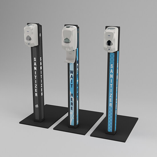These Versatile sanitizer stands are designed for indoor/outdoor use. Ships unassembled with hardware included to screw base to post. Base is Polyurethane.