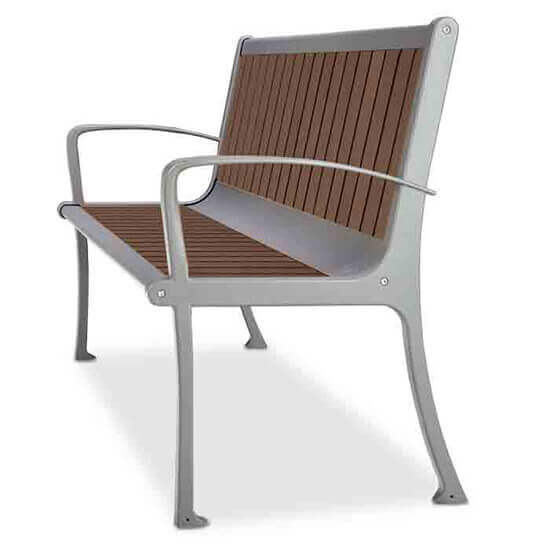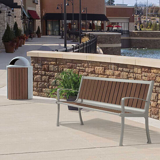 Recycled planks and powder-coated aluminum showcase sleek lines in the Coronado bench. Eco-conscious and stylish, the Coronado Bench with recycled planks is a long-lasting and low-maintenance outdoor seating option.