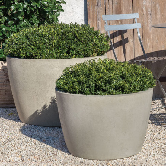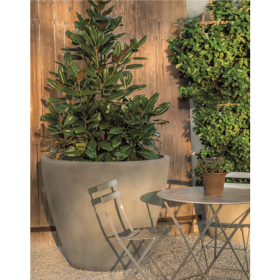 Designed for commercial landscape installation, each piece is manufactured in the USA of high quality durable cast stone.  At 7,500 psi, these planters are appropriate for high traffic public spaces and pedestrian safety applications.  Choose from 3 distinct styles:  Series 1 (wide tapered) Series 2 (low) or Series 3 (tall Tapered).