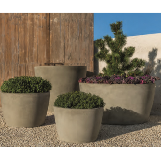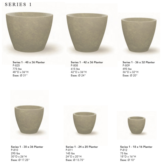 Designed for commercial landscape installation, each piece is manufactured in the USA of high quality durable cast stone. At 7,500 psi, these planters are appropriate for high traffic public spaces and pedestrian safety applications Series 2 (low).