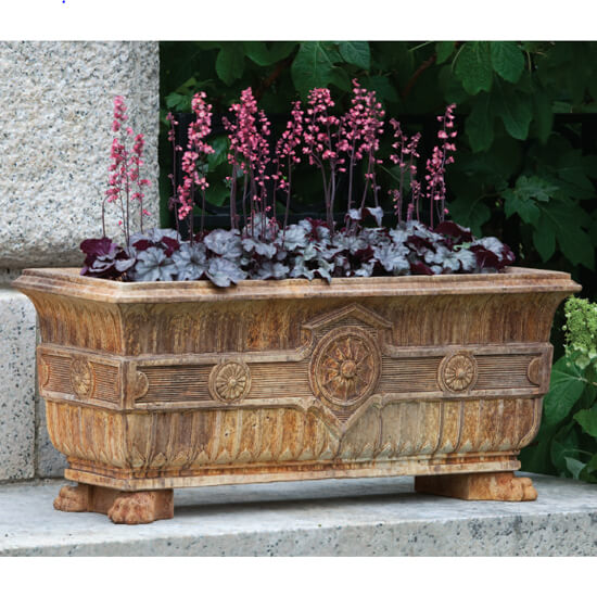 These beautiful cast stone products are available in a choice of three exclusive (3) acid stains and eight (8) exclusive natural pigment stains in addition to natural cast stone. All of our patinas and acid stains are hand applied in a multi-step process, producing uniquely beautiful original pieces. Designed to replicate the look of naturally aged materials, the patinas will not prevent the natural aging process that occurs in an outdoor environment.