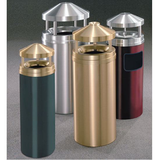 The Geneva Canopy Top Waste Receptacle features Heavy gauge seamless hand spun Aluminum tops.