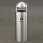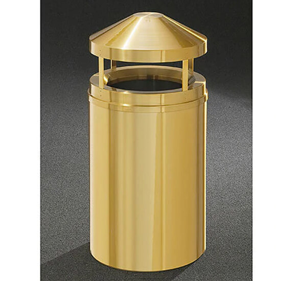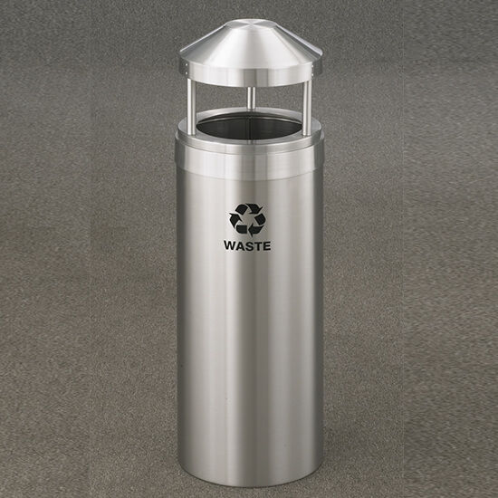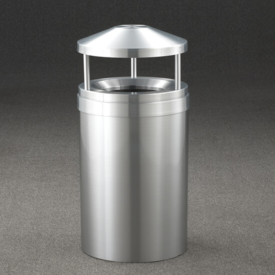 The Geneva Canopy Top Waste Receptacle features Heavy gauge seamless hand spun Aluminum tops.