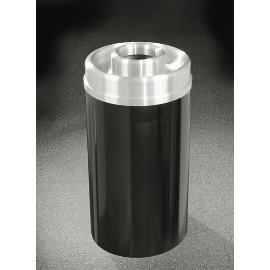 The Geneva Donut Top Waste Receptacle features Heavy gauge seamless hand spun Aluminum tops.