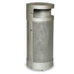 * Perforated steel with a fixed hooded lid and side opening door with lock.