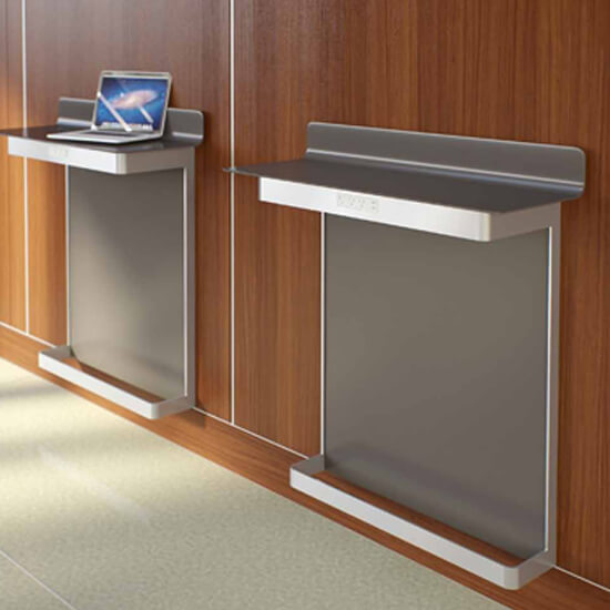GoTo Wall-Mounted worktables use minimal space for maximum utility. Ideal for short term mobile multi-taskers or a connection space for focused tasks.