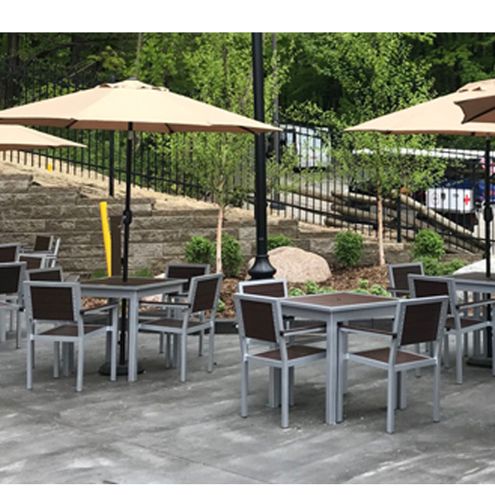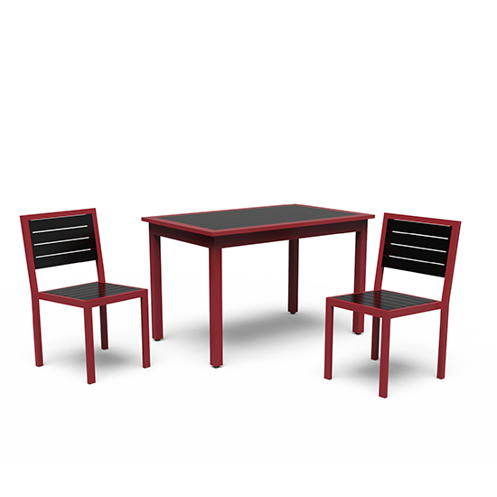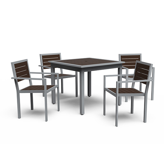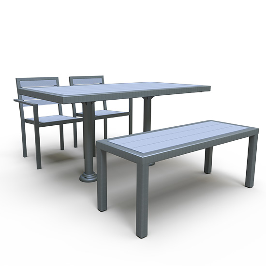 Clean lines and classic styling. The Green view collection offers a stylish and comfortable spot for dining and relaxing. Recycled lumber available in Black, Gray, Brown, and Cedar. Aluminum framing available in 30 powder coated colors. 72” long rectangular table also available.