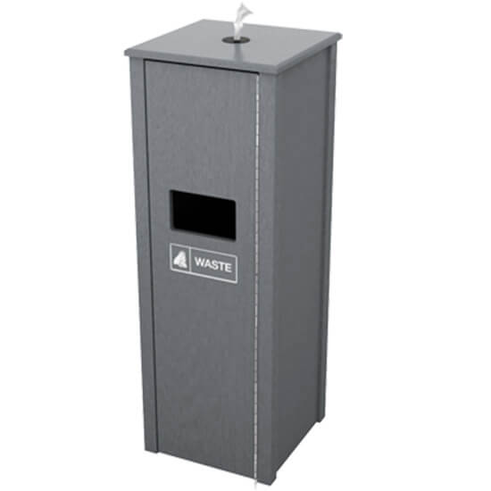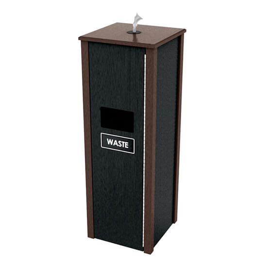 Our Earth Friendly wipe dispensers are constructed of 97% recycled milk jugs. It is resistant to insect, mildew, mold, & graffiti. Won’t split, rot, crack and never needs paint. Has UV inhibitors to prevent fading. Comes in 10 colors. Two tone is available, matching trash and towel valets.