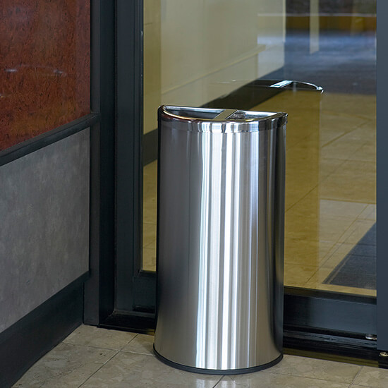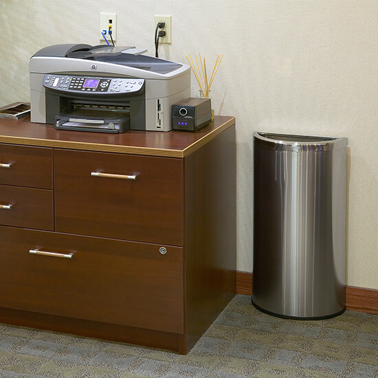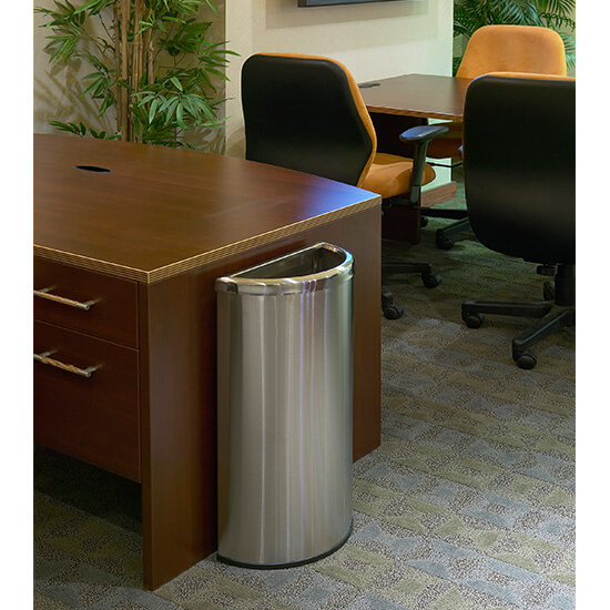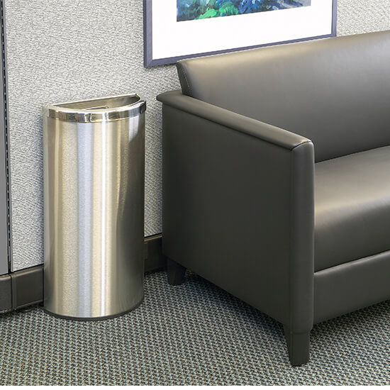 * Designed with a flat side to easily fit against any wall, column or fixture.