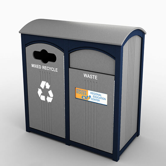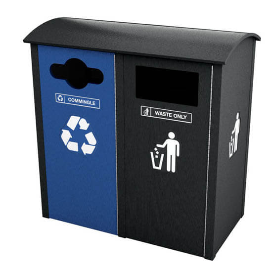 Side load enclosure for dual stream recycling or trash