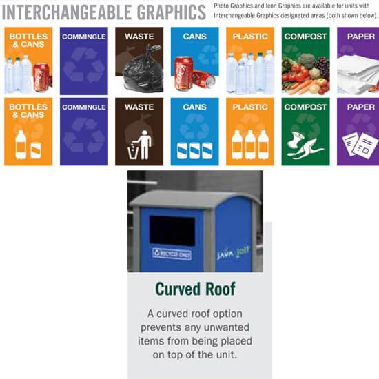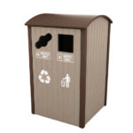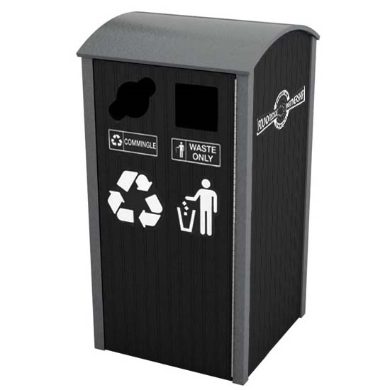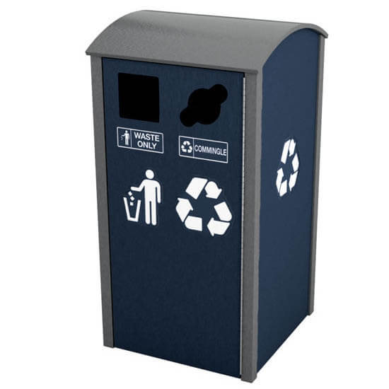 Side load enclosure for single or dual stream recycling or trash with plain or bead panel design.