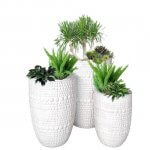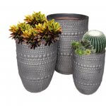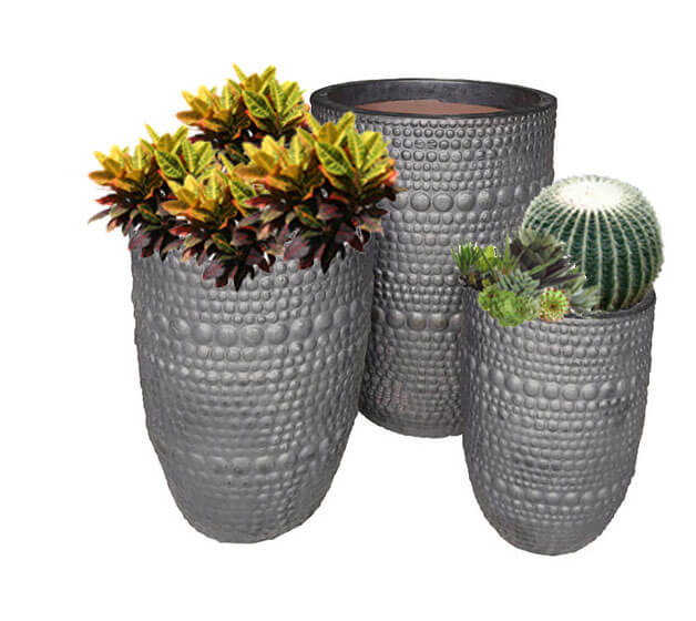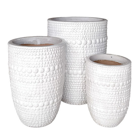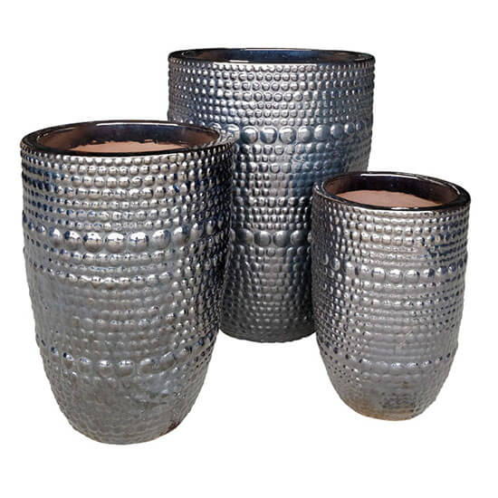 All of the above sizes come together in one package. Collaborating with small family owned ceramic factories to create high quality, innovative pottery for the commercial marketplace. Traditional craftsmanship is used to create these planters and guarantee that no 2 are alike. Uneven glazing and variations in color and texture are part of their beauty. Comes with hole in bottom.
