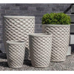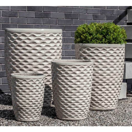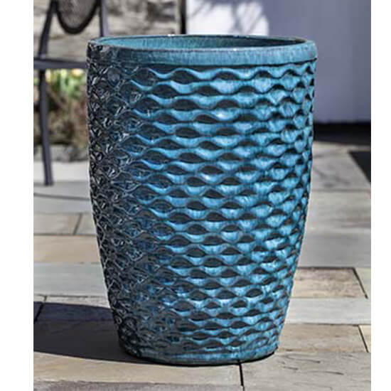 Glazed and Terra Cotta pottery is high fired at 990 (terra cotta) to 1000 (glazed) degrees centigrade to maximize frost resistance and durability. Made by hand with a dense clay specially suited for outdoor use.