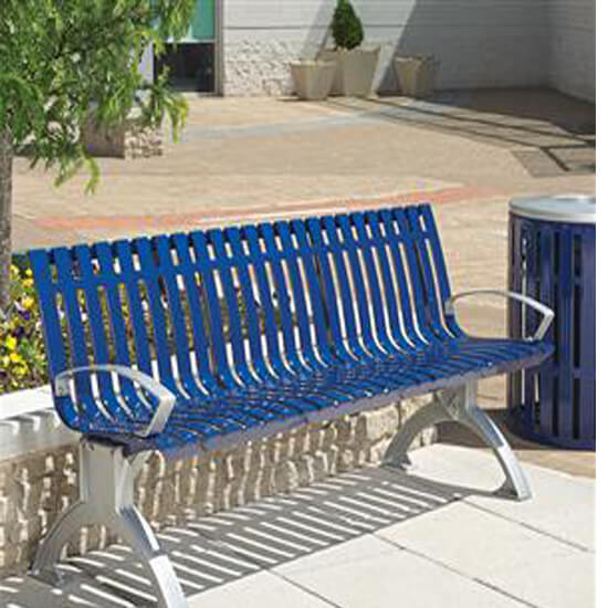 The Latitude contour bench with side arms is a great option for comfortable and stylish seating. This bench has a plastisol coating that keeps the bench warm in the winter and cool in the summer. Plastisol also comes in 19 color options. This steel bench seat is also protected by the patented Fusion Advantage finish that won’t rust, fade, peel, chip, crack, mold or mildew. Fade-resistant, powder-coated cast iron bench ends and armrests feature a state-of-the-art primer proven to prevent rusting. For added support, the Latitude contour bench with side arms has a center leg and optional center armrests.