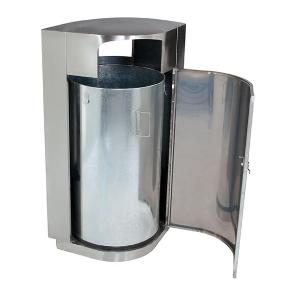 * Featuring a locking side door for easy emptying of the trash.