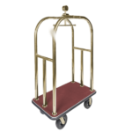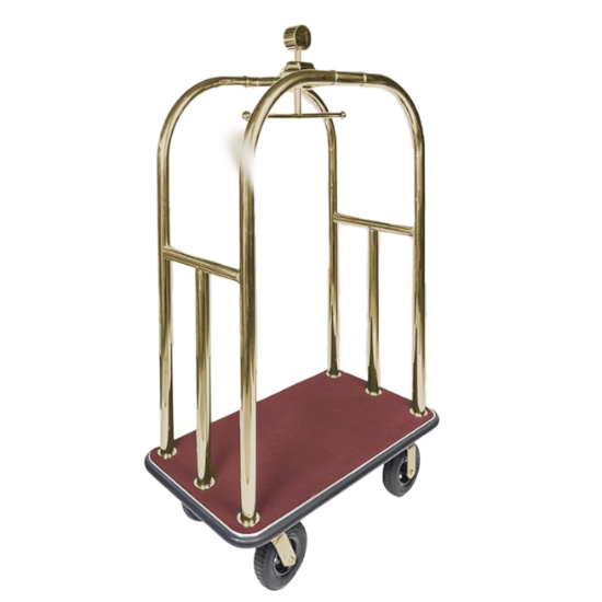 Deluxe luggage cart for hospitality use. Commercial grade casters and heavy duty steel tube combined with a decorative finial make a lasting impression.
