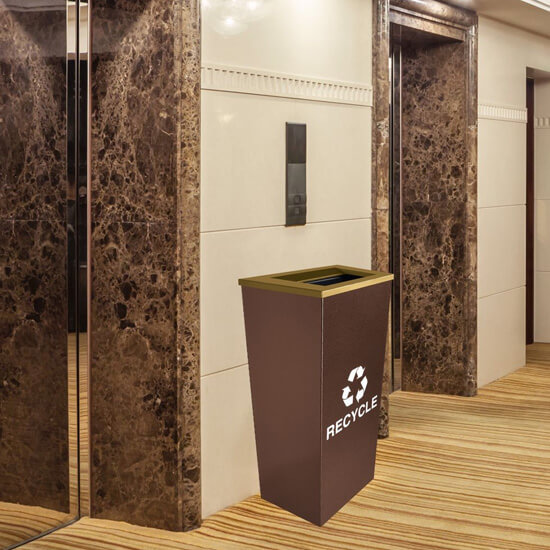 * Heavy-duty steel recycling receptacle for Indoor or Outdoor use.
