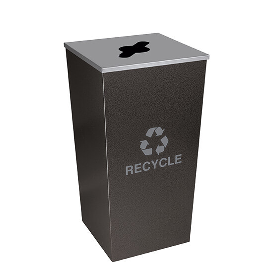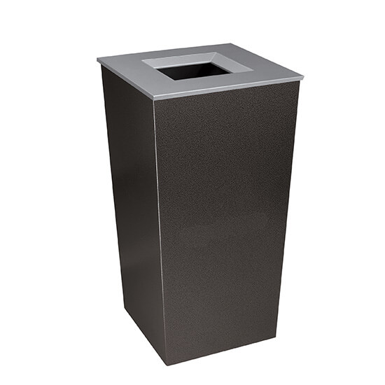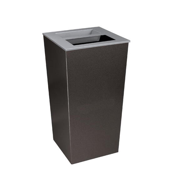 High capacity, heavy-duty steel trash and recycling bins.  Interior use only. Great in lobbies, meeting spaces and offices.