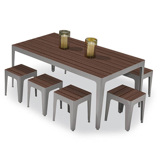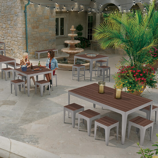 Modular tables, benches and stools in Recycled Plastic allow you to design your perfect indoor or outdoor space.