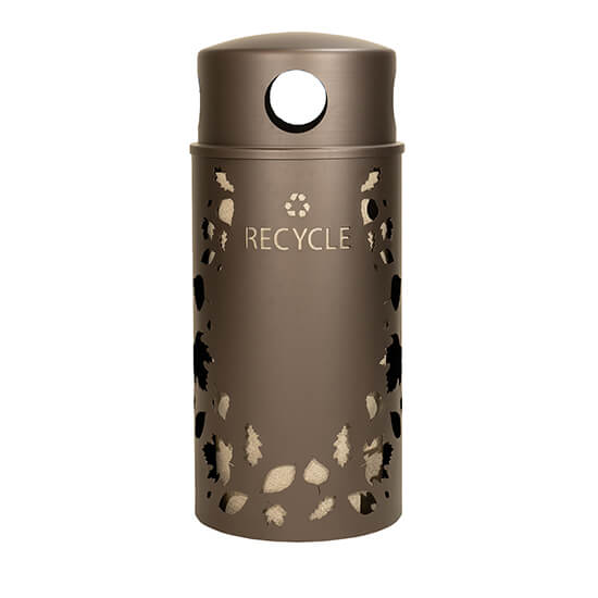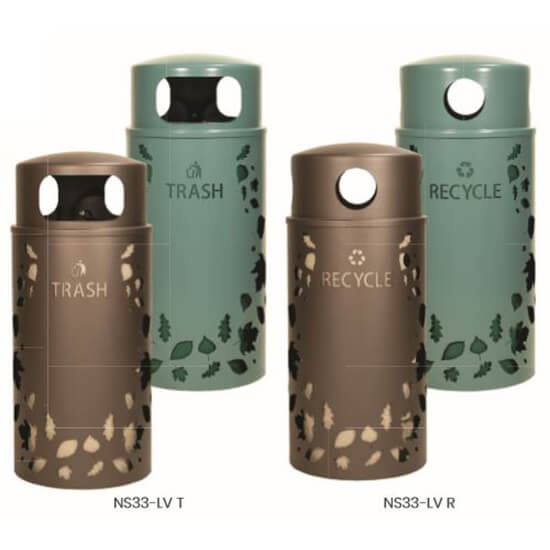 Inspired by the great outdoors, out Nature Series features two attractive patterns creating four sets of 32-gallon decorative Trash and Recycling receptacles in neutral metallic powder-coated finishes with color-coordinated liners that further enhance the laser cut graphics.