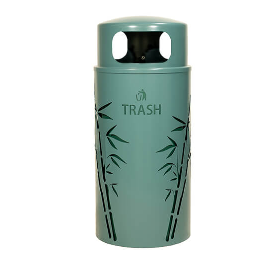 - Laser cut graphics include Bamboo Stalks or Leaf patterns featuring either TRASH or RECYCLE with corresponding universal icons – no decals