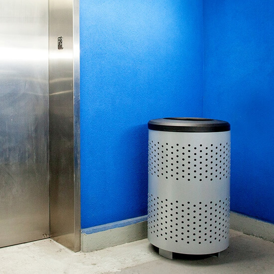 This metal bin is durable and includes functional design components that allow for easy servicing.