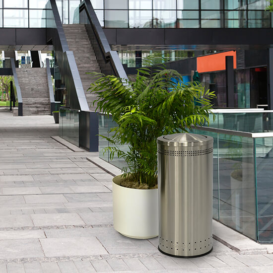 This Stainless Steel 360º receptacle provides an upscale look.