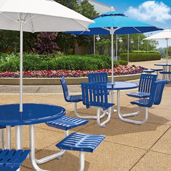 * A thick plastisol coating on seats & table tops mean surfaces remain cool to the touch, even in the hot sun.