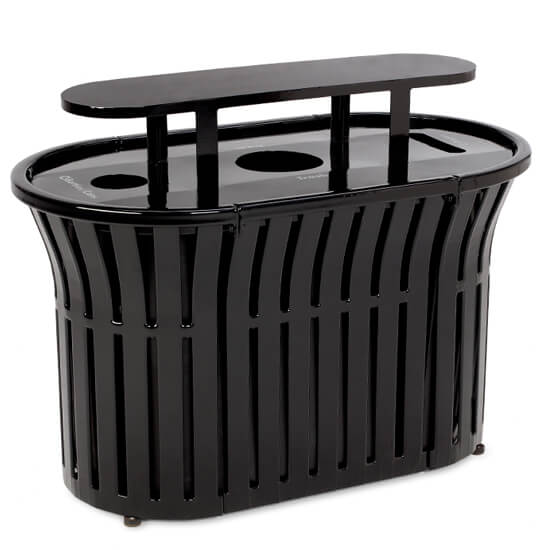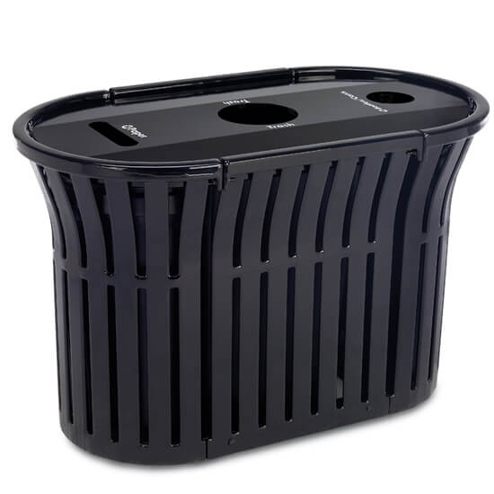 The Rendezvous 3-Stream Recycler with Bonnet top is ideal for outdoor waste collection. The bonnet top discourages wildlife and keeps out inclement weather; while keeping large enough openings for waste and recyclables. Our exclusive, patented TopCoat™ powder coating process has a richly tinted, high-gloss finish encapsulating the steel. Additionally, the powder-coating is shielded by FusionGuard® for extreme rust protection. Lastly, Plastisol coating protects it from cracking, fading, mold, and mildew. The Rendezvous 3-Stream Recycler with Bonnet top is a long-lasting, easy to use, and top quality commercial receptacle.