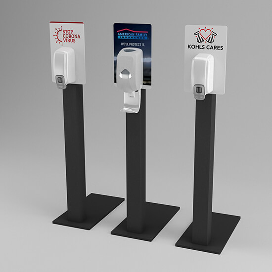 These versatile graphic sanitizer stands are designed for indoor/outdoor use.