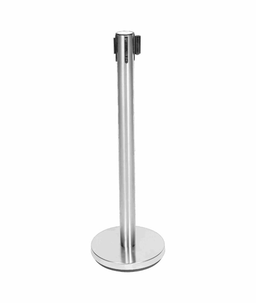 Standard Crowd Control Stanchion – Stainless Steel, 2-pack Stainless Steel finish 4-way adapter to attach 3 other belts 6 ft. Retractable Black belt 16lbs. weighted base 2-pack