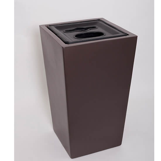 This tall square Fiberglass receptacle is available as a trash only, Ash/Trash or recycling receptacle.