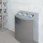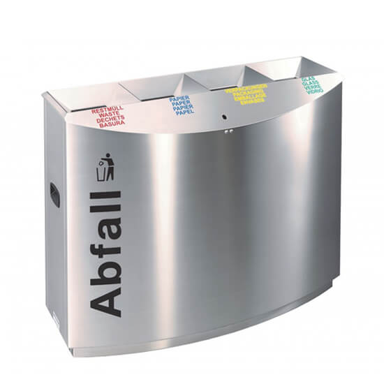 These bins offer an elegant, functional stainless steel solution with a contoured design line. Available with 2, 3, and 4 openings in a linear configuration with graphics on both sides to assist users in separating waste correctly (wall mounting options are also available).