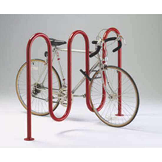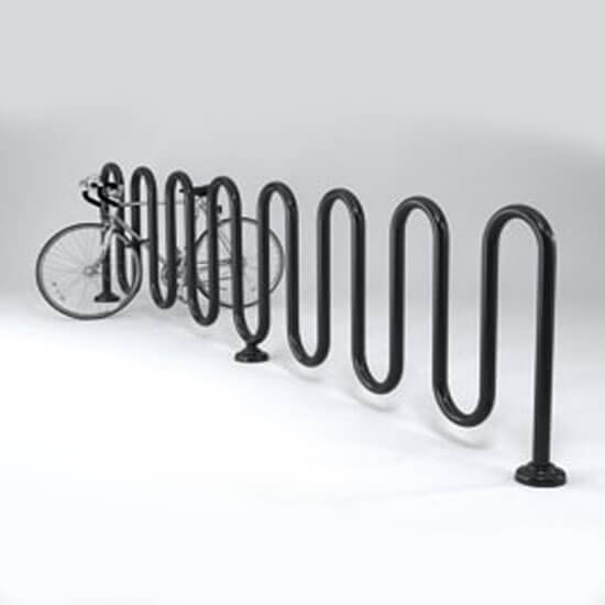 * The Winder Plus bicycle parking rack has the same sleek, modern look as heavy-duty serpentine type racks.