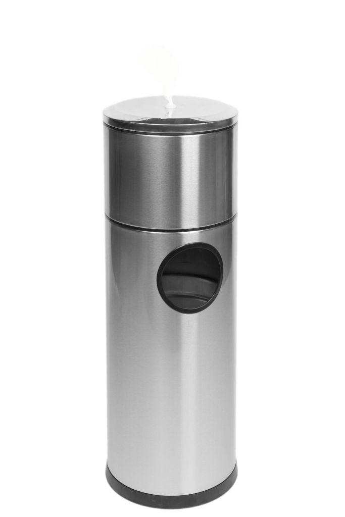• Freestanding stainless steel bin with sanitary wipe dispenser (wipes not included)