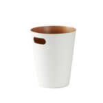 Duo-tone can brings modern contemporary * Wood can with stained finish. * Capacity 2 1/4 gallons (9 L) * 9″ Diameter x 11″ High * DESIGN: Henry Huang